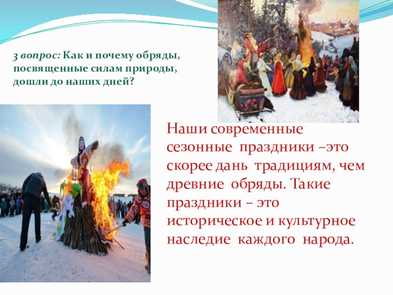 2 вопрос: Как и почему обряды, посвященные силам природы, дошли до наших дней?
