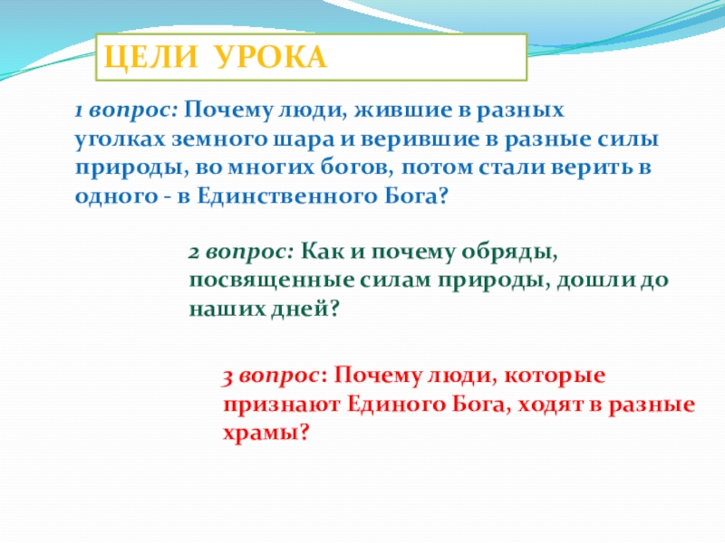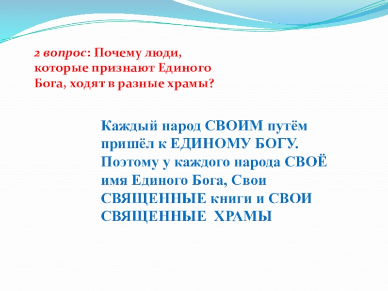 3 вопрос: Почему люди, которые признают Единого Бога, ходят в разные храмы?