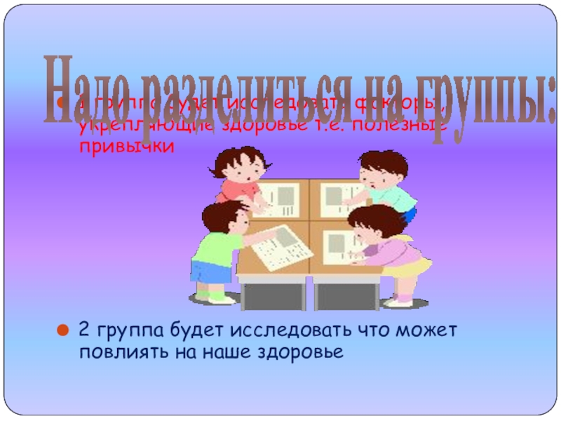 Надо разделиться на группы: