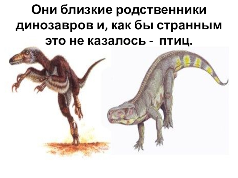 Слайд 3Они близкие родственники динозавров и, как бы странным это не казалось