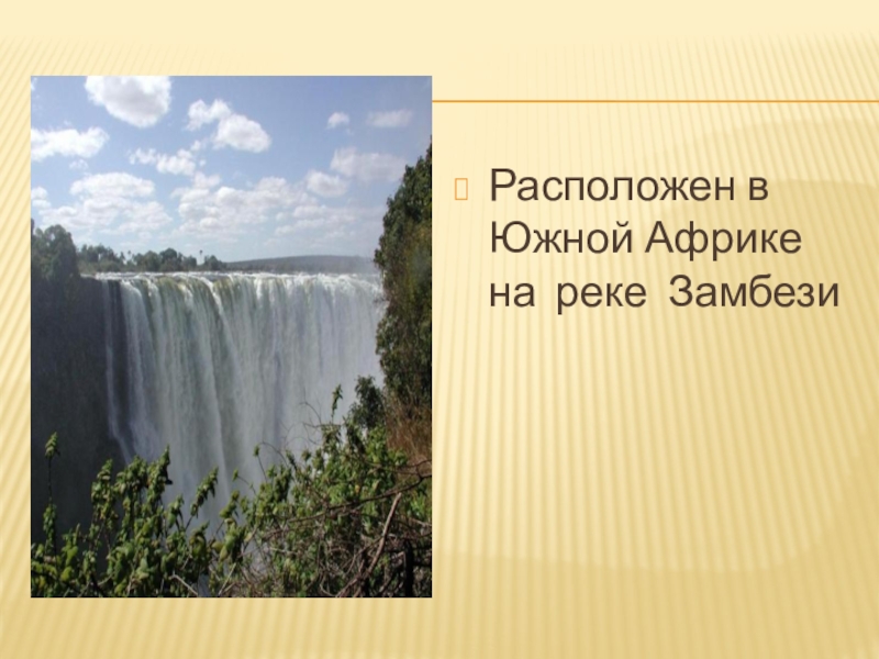Слайд 6Расположен в Южной Африке на реке Замбези