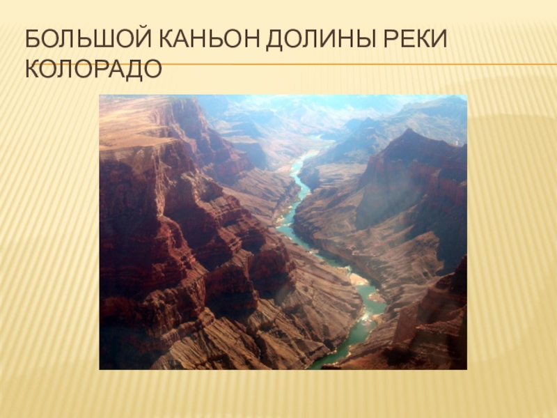 Слайд 11БОЛЬШОЙ КАНЬОН ДОЛИНЫ РЕКИ КОЛОРАДО