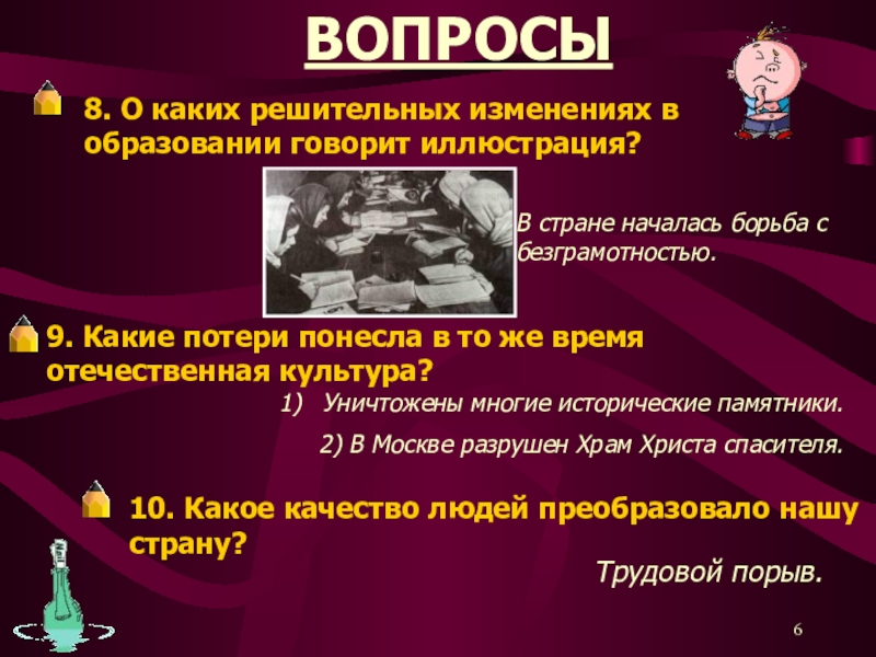9. Какие потери понесла в то же время отечественная культура?