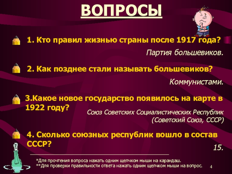 **Для проверки правильности ответа нажать одним щелчком мыши на вопрос.