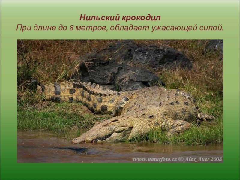 Слайд 22Нильский крокодил При длине до 8 метров, обладает ужасающей силой.