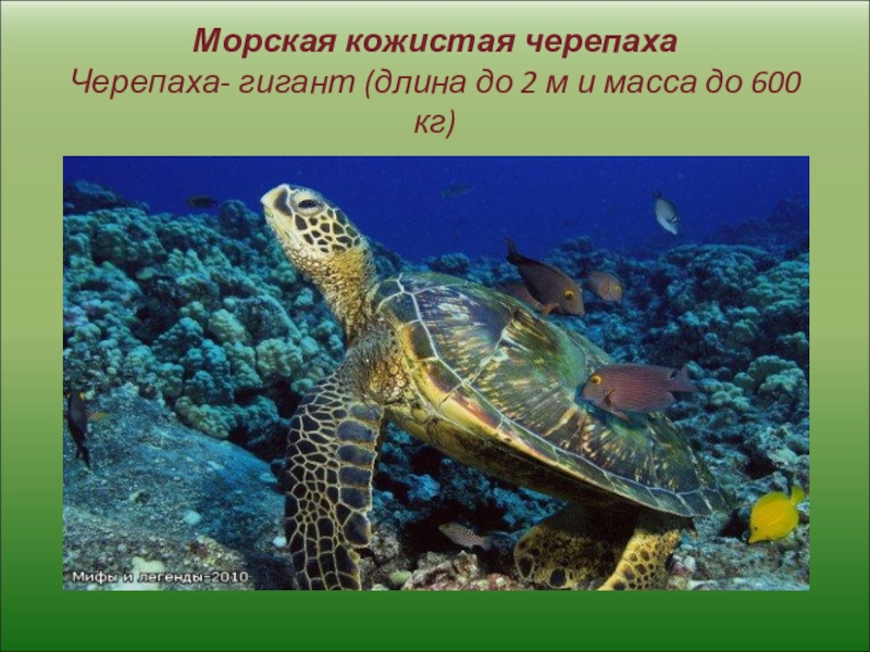Морская кожистая черепаха Черепаха- гигант (длина до 2 м и масса до 600 кг)
