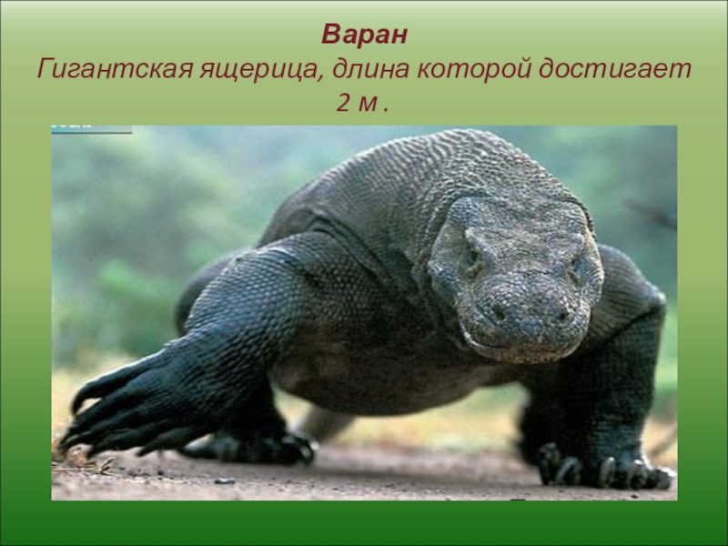 Слайд 25Варан Гигантская ящерица, длина которой достигает 2 м .