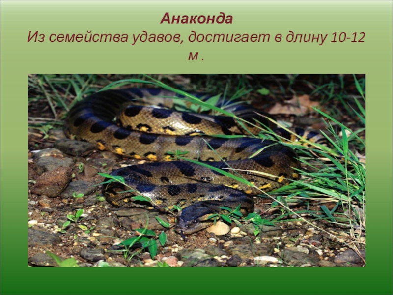 Слайд 24Анаконда Из семейства удавов, достигает в длину 10-12 м .