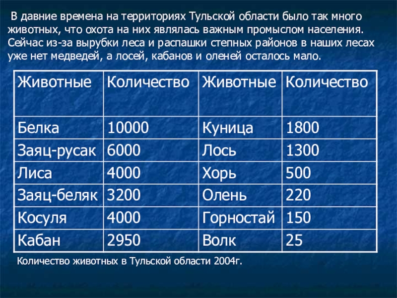 Количество животных в Тульской области 2004г.