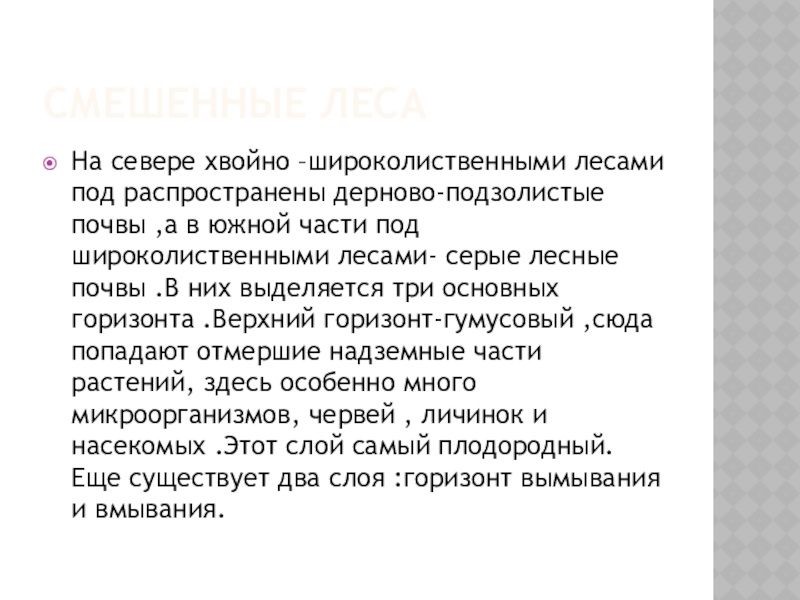 На севере хвойно –широколиственными лесами под распространены дерново-подзолистые почвы ,а