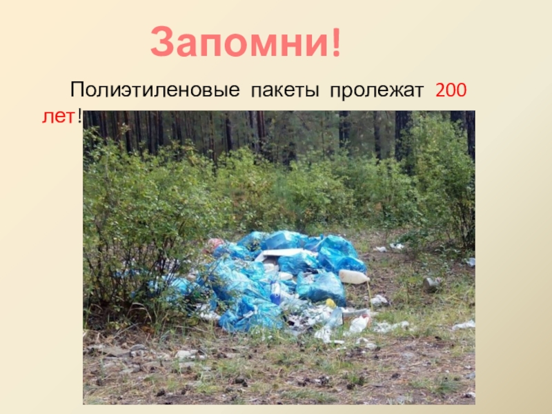 Запомни!     Полиэтиленовые пакеты пролежат 200 лет!