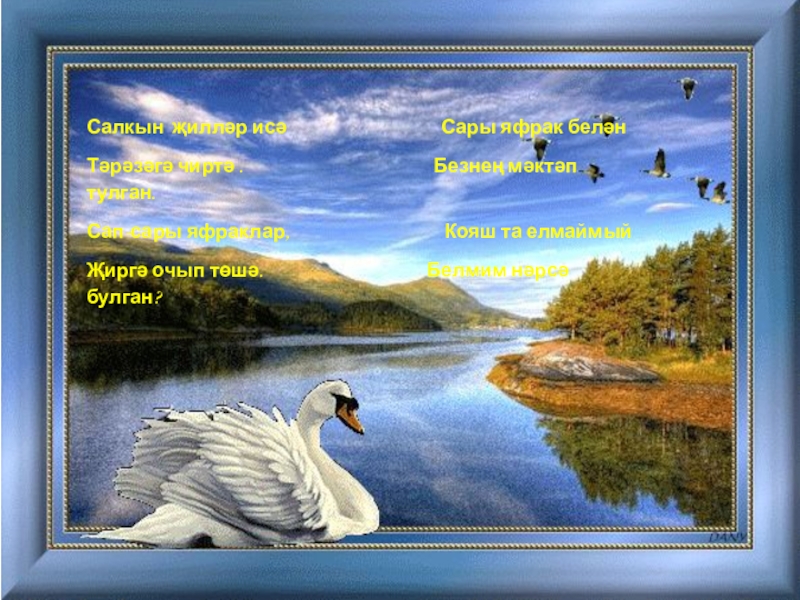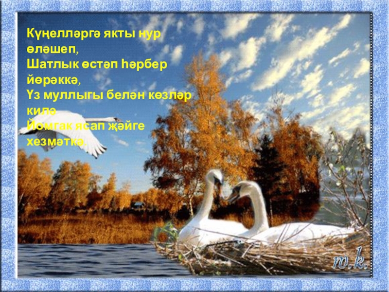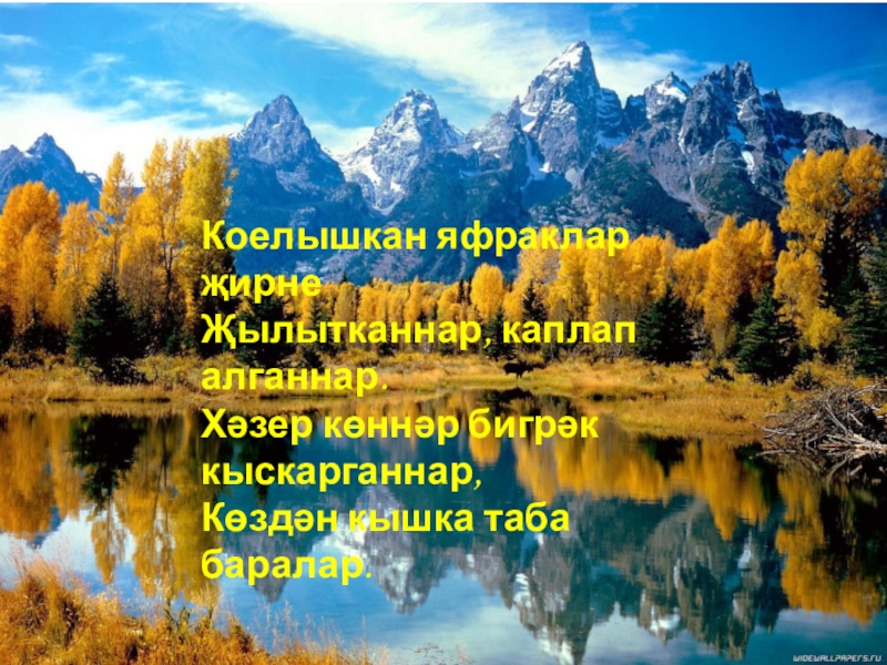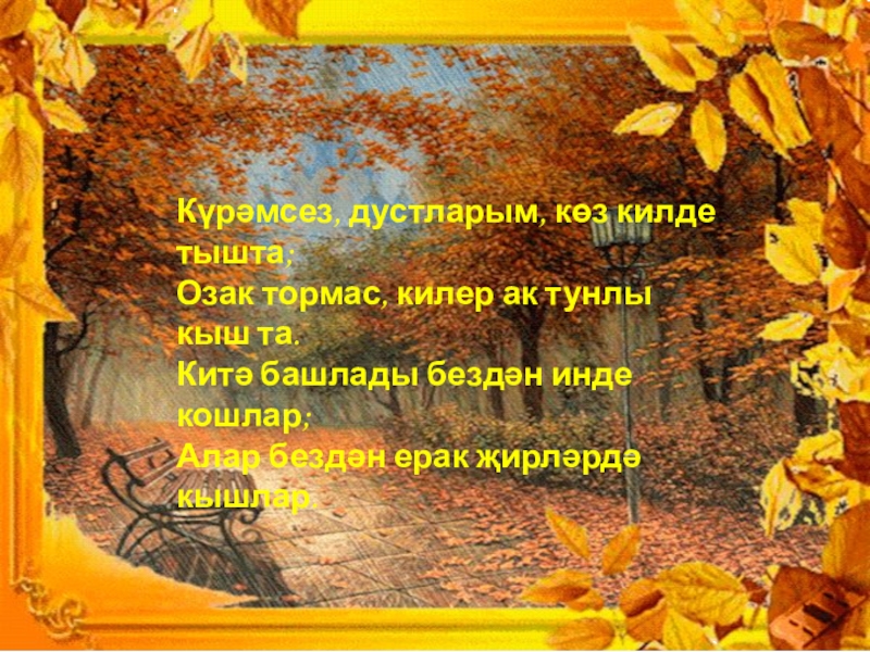 Слайд 11Күрәмсез, дустларым, көз килде тышта; Озак тормас, килер ак тунлы кыш