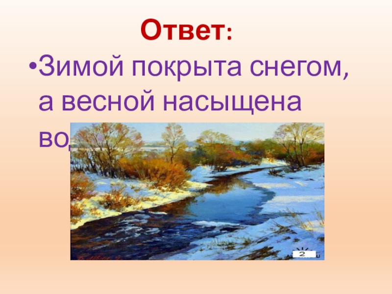 Ответ:Зимой покрыта снегом, а весной насыщена водой.
