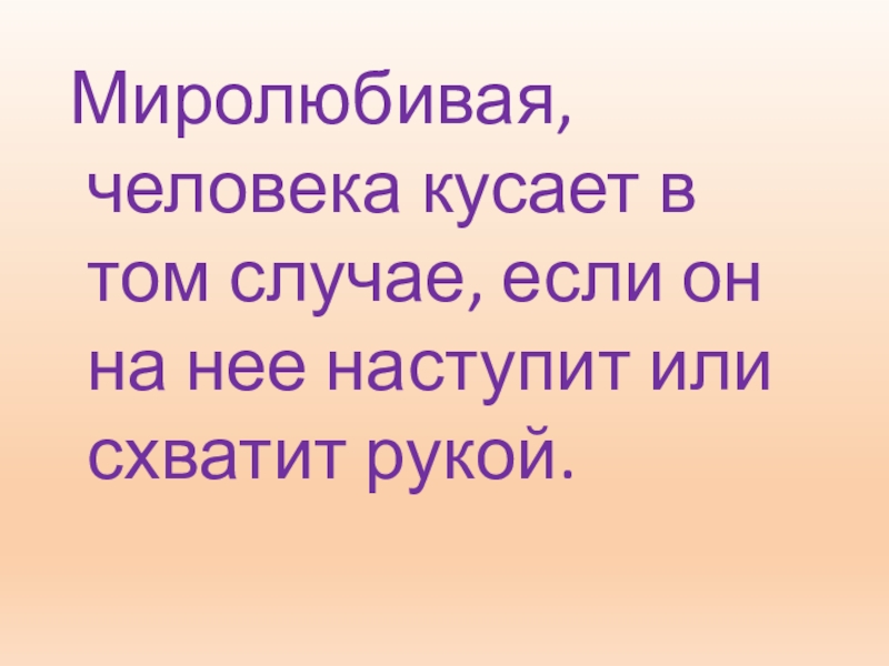 Миролюбивая, человека кусает в том случае, если он на нее