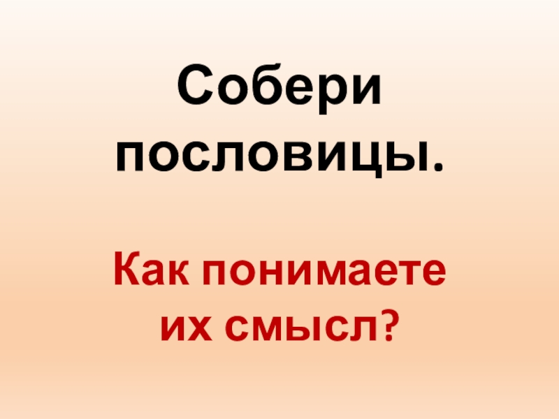 Слайд 73Собери пословицы. Как понимаете их смысл?