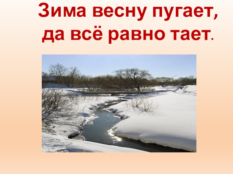 Слайд 74Зима весну пугает, да всё равно тает.
