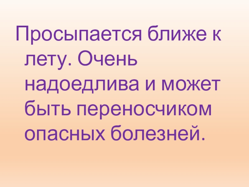 Просыпается ближе к лету. Очень надоедлива и может быть переносчиком опасных