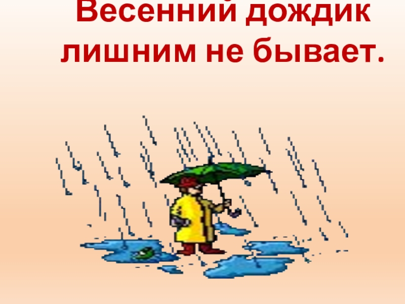 Слайд 77Весенний дождик лишним не бывает.