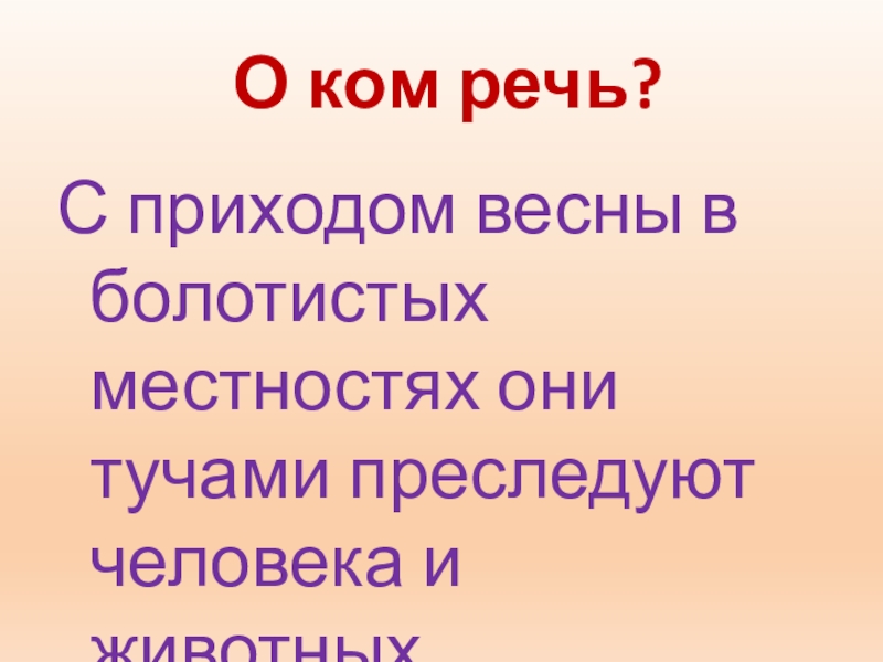 О ком речь?С приходом весны в болотистых местностях они тучами преследуют человека и животных.