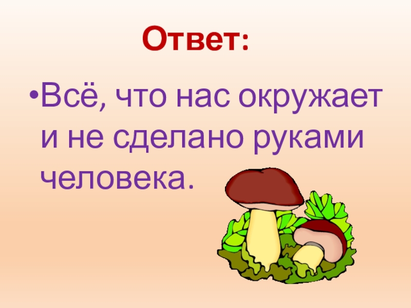 Ответ:Всё, что нас окружает и не сделано руками человека.