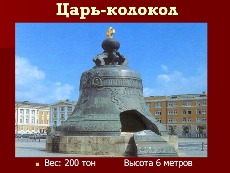 Царь-колоколВес: 200 тон     Высота 6 метров