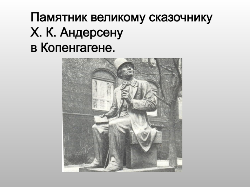 Слайд 29Памятник великому сказочнику Х. К. Андерсену в Копенгагене.