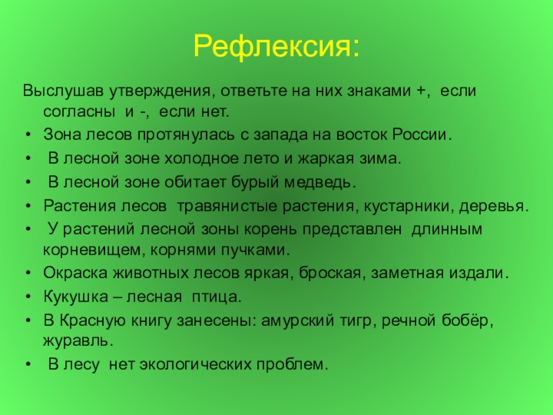 Выслушав утверждения, ответьте на них знаками +, если согласны и -,