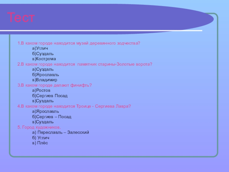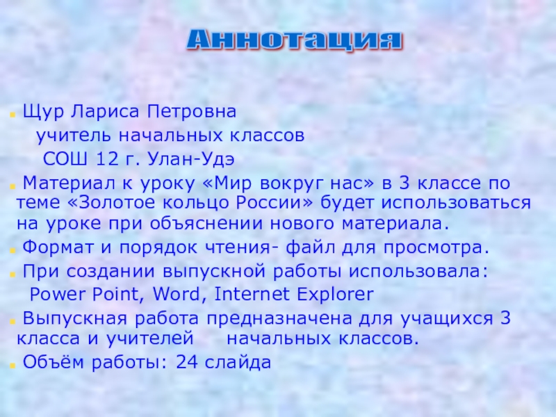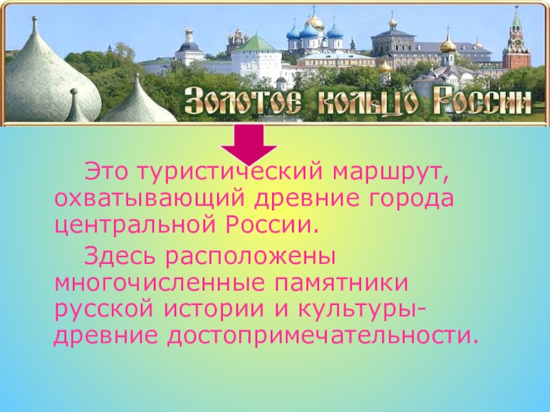 Материал к уроку «Мир вокруг нас» в 3 классе по теме «Золотое кольцо России» будет использоваться на уроке при объяснении нового материала.