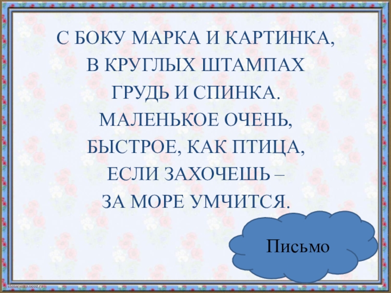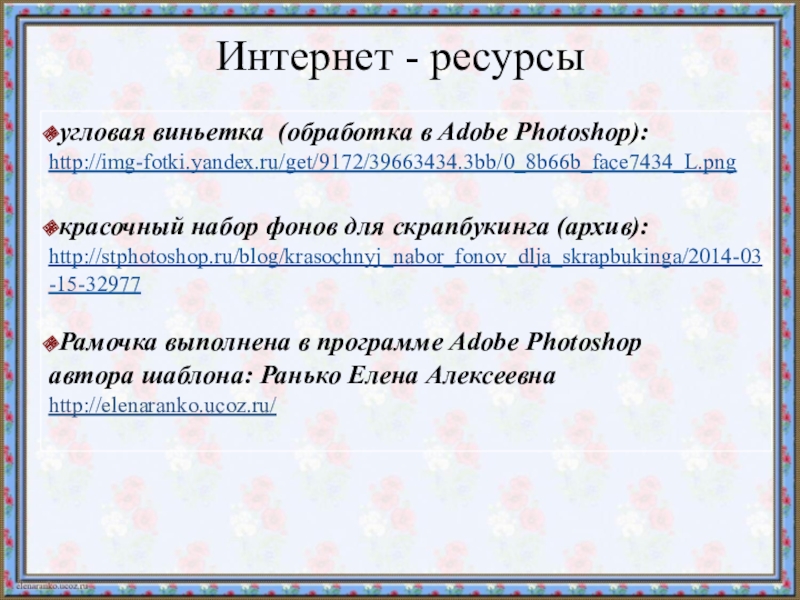 Это сайт презентаций, где можно хранить и обмениваться своими презентациями, докладами, проектами, шаблонами в формате PowerPoint с другими пользователями. Мы помогаем школьникам, студентам, учителям, преподавателям хранить и обмениваться учебными материалами.