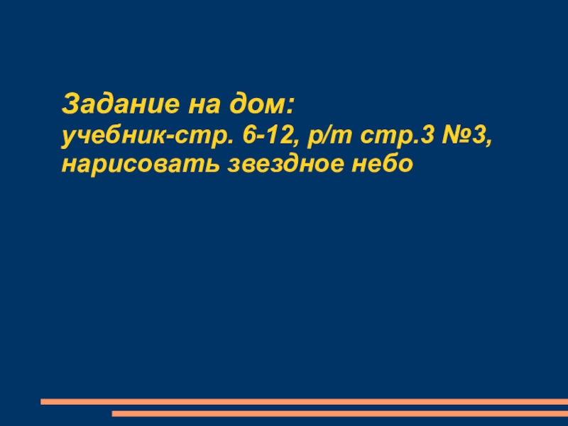 Задание на дом: учебник-стр. 6-12, р/т стр.3 №3, нарисовать звездное небо