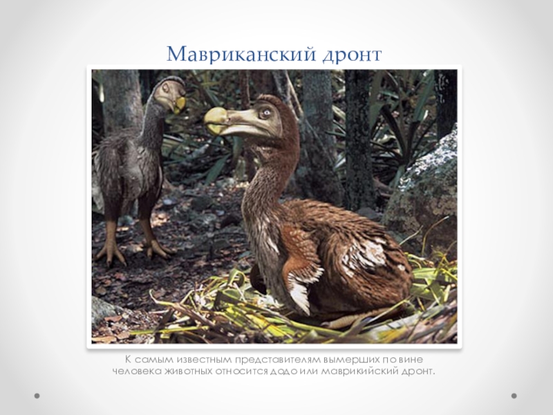 Слайд 9Исчезнувшие и исчезающие виды животных по вине человека