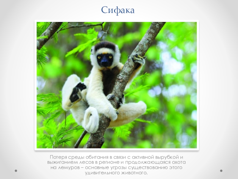 в регионе и продолжающаяся охота на лемуров – основные угрозы существованию этого удивительного животного.