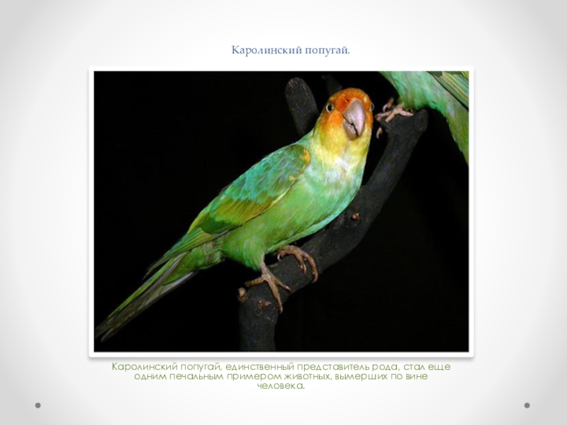Каролинский попугай, единственный представитель рода, стал еще одним печальным примером