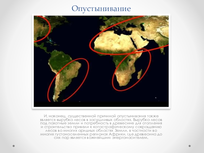И, наконец, существенной причиной опустынивания также является вырубка лесов в засушливых