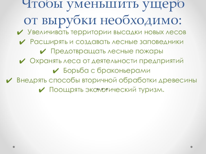 Слайд 19Чтобы уменьшить ущерб от вырубки необходимо: