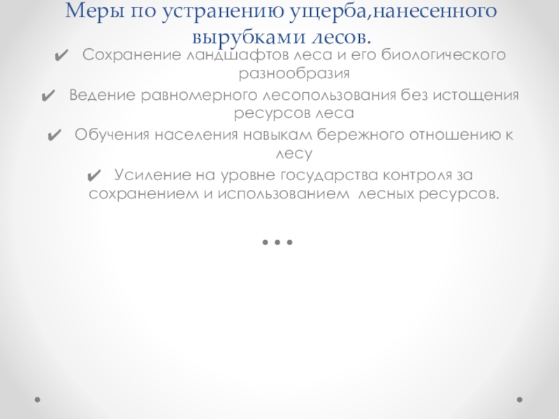 Слайд 18Меры по устранению ущерба,нанесенного вырубками лесов.