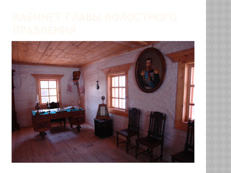Слайд 5КАБИНЕТ ГЛАВЫ ВОЛОСТНОГО ПРАВЛЕНИЯ
