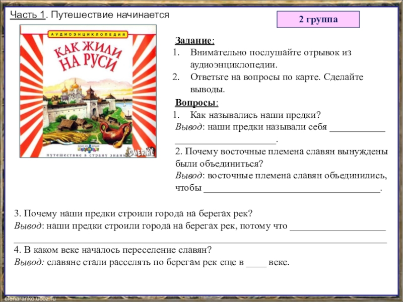 Вывод: восточные племена славян объединились, чтобы ___________________________________.