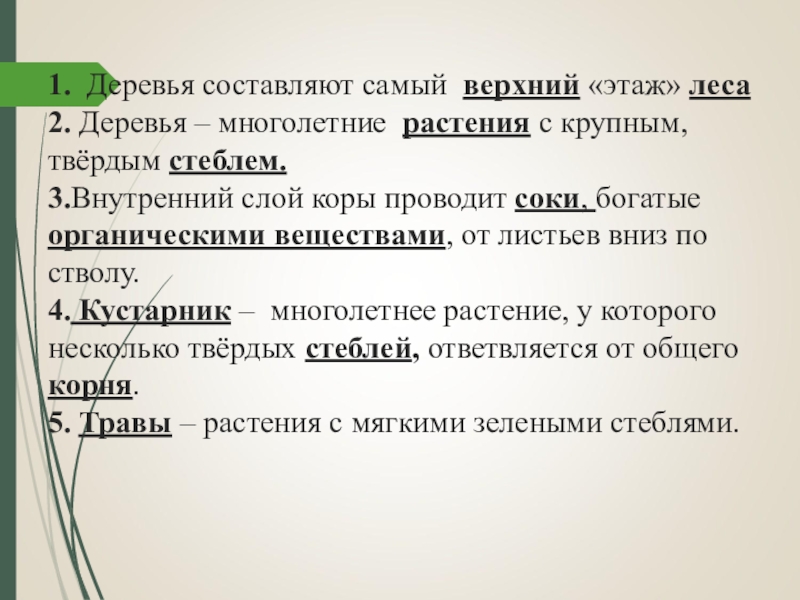 Деревья — многолетние растения с крепким одревесневшим стеблем.