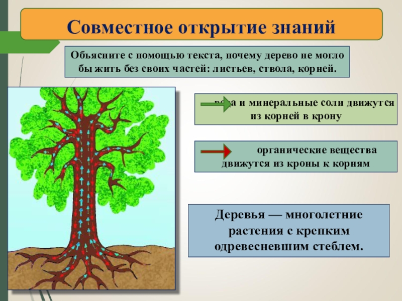 вода и минеральные соли движутся из корней в крону