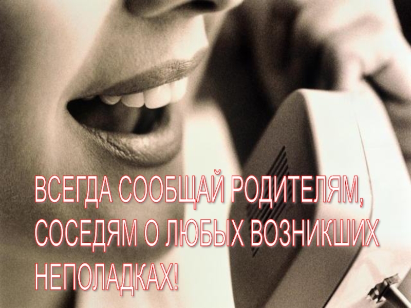 Слайд 13ВСЕГДА СООБЩАЙ РОДИТЕЛЯМ,