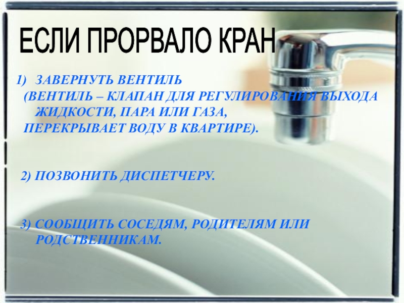 Слайд 8ЕСЛИ ПРОРВАЛО КРАН