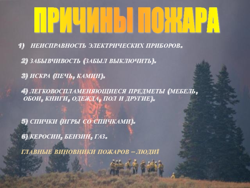 Слайд 5ПРИЧИНЫ ПОЖАРА