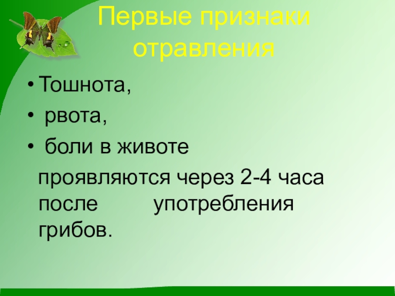 проявляются через 2-4 часа после употребления грибов.