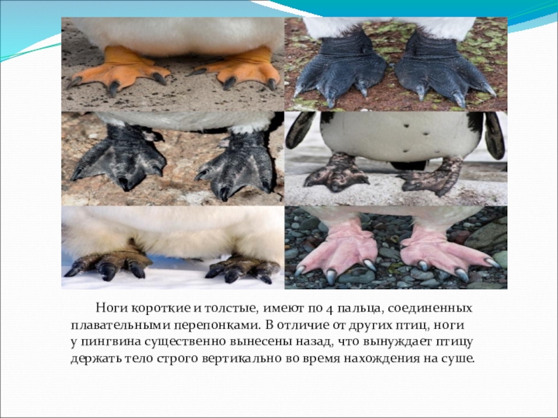 пальца, соединенных плавательными перепонками. В отличие от других птиц, ноги