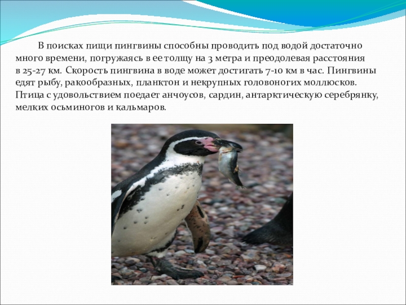 Слайд 7 В поисках пищи пингвины способны проводить