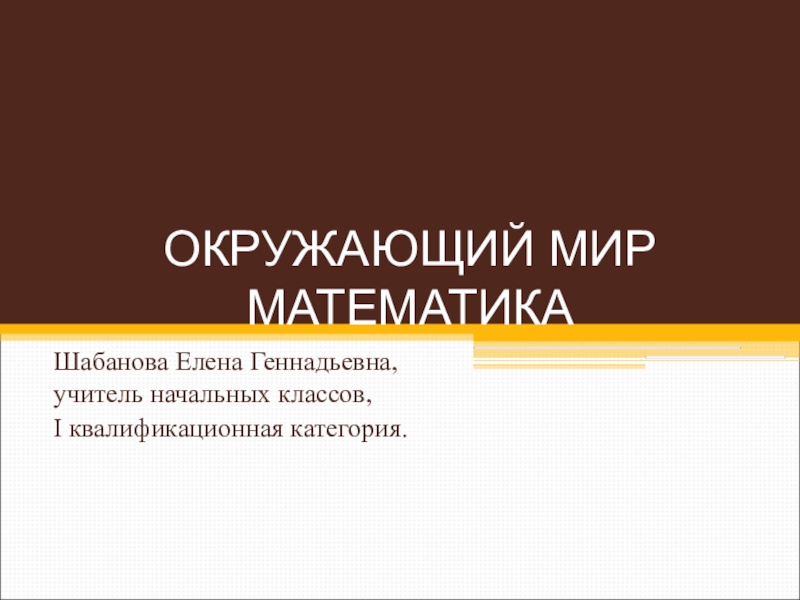 ОКРУЖАЮЩИЙ МИР МАТЕМАТИКАШабанова Елена Геннадьевна, учитель начальных классов,I квалификационная категория.