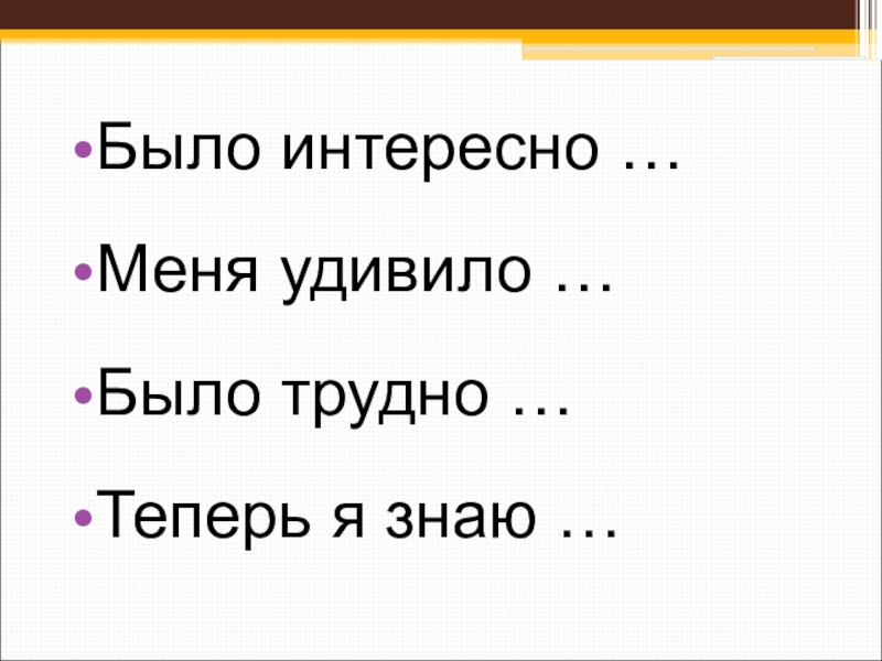 Было интересно …Меня удивило …Было трудно …Теперь я знаю …