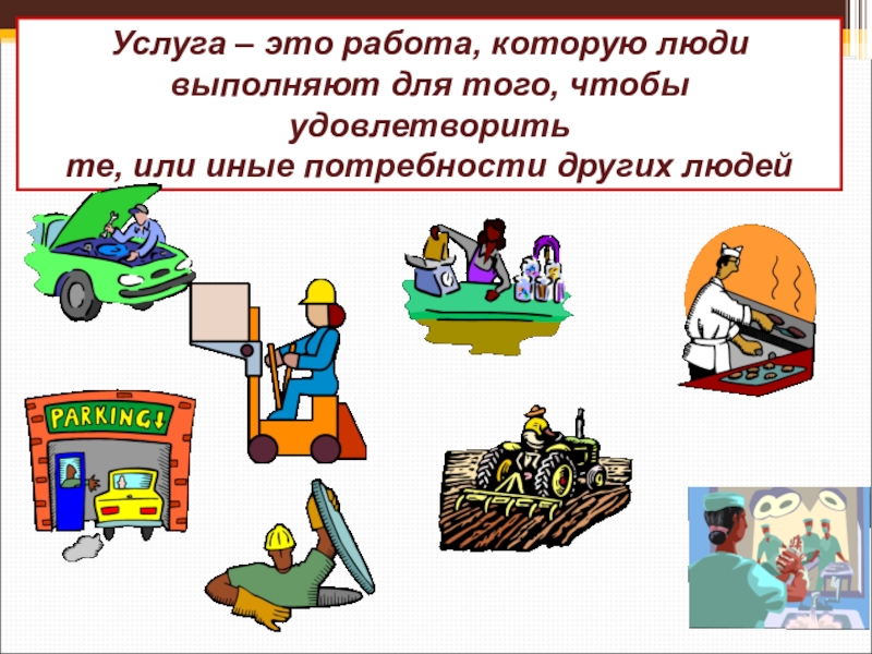 Услуга – это работа, которую люди выполняют для того, чтобы удовлетворить те, или иные потребности других людей