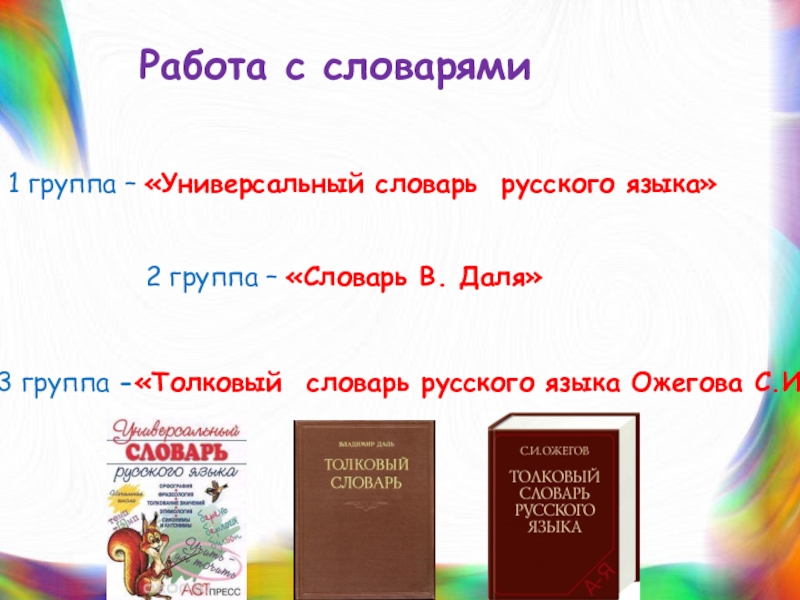 3 группа -«Толковый словарь русского языка Ожегова С.И»